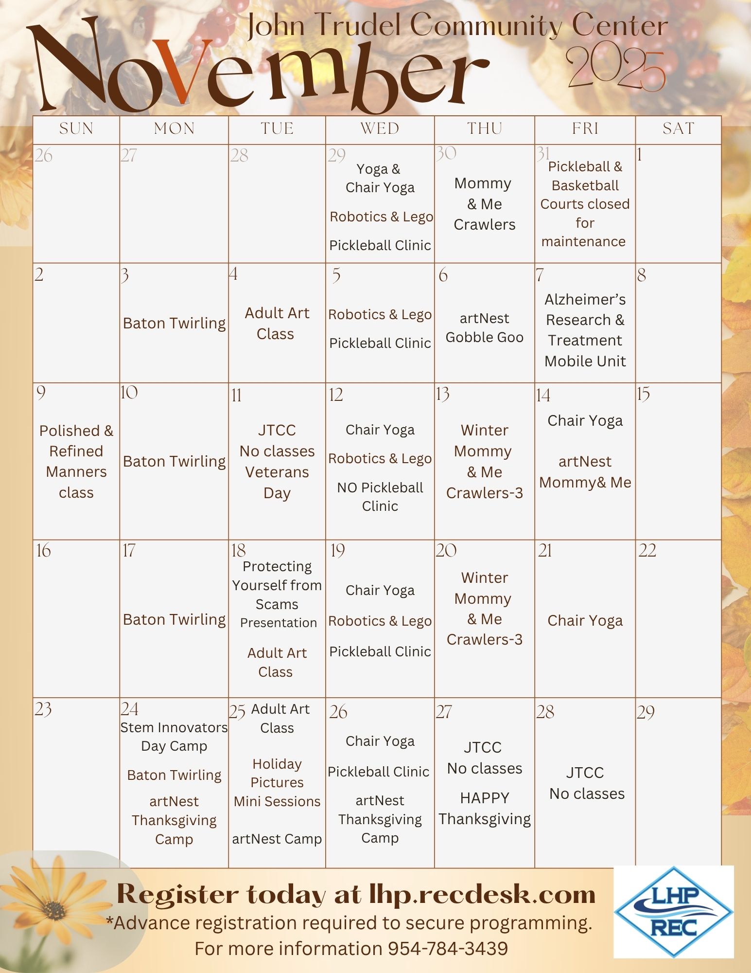 Click on links below for the JTCC General, and more detailed, November Calendars: