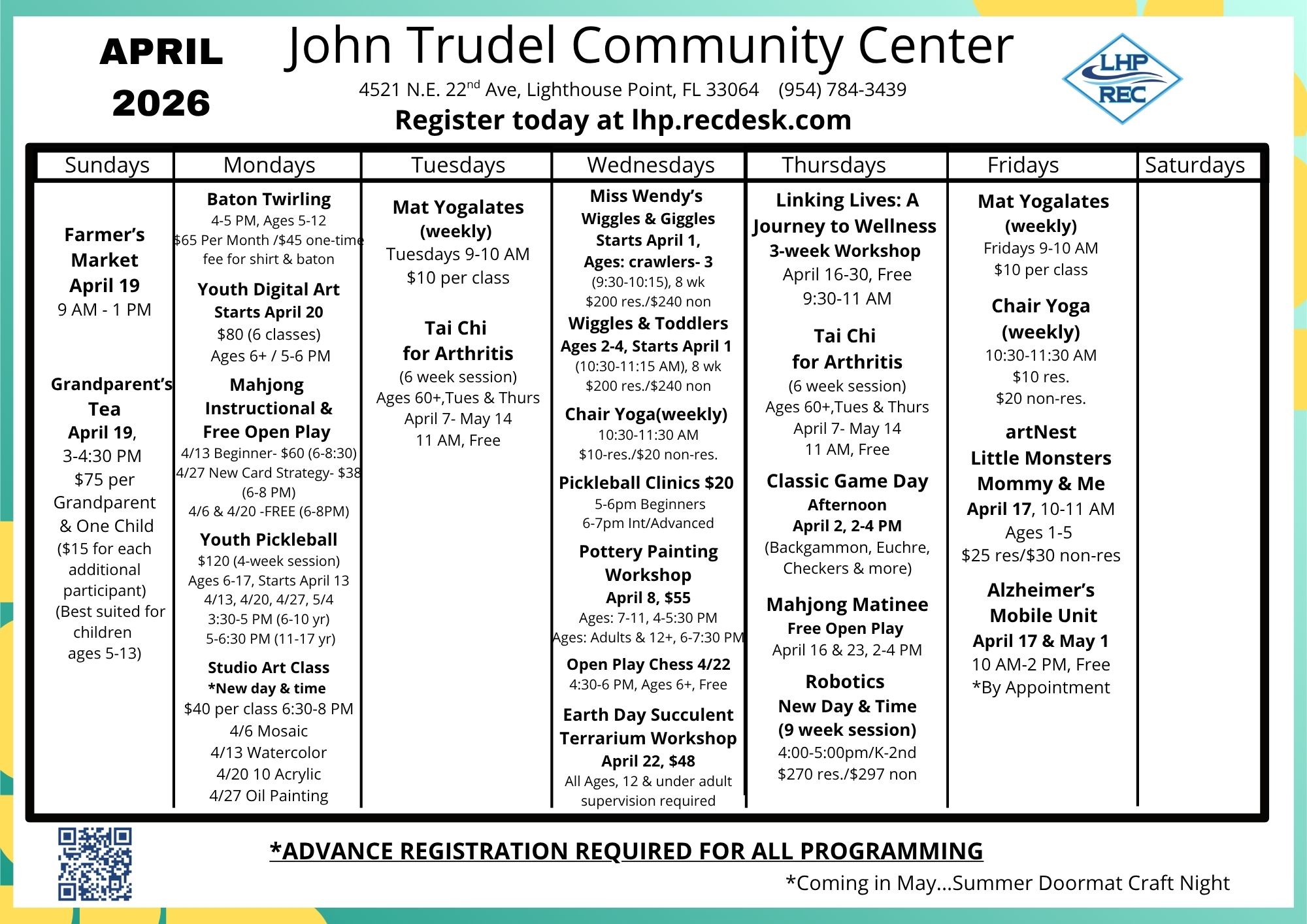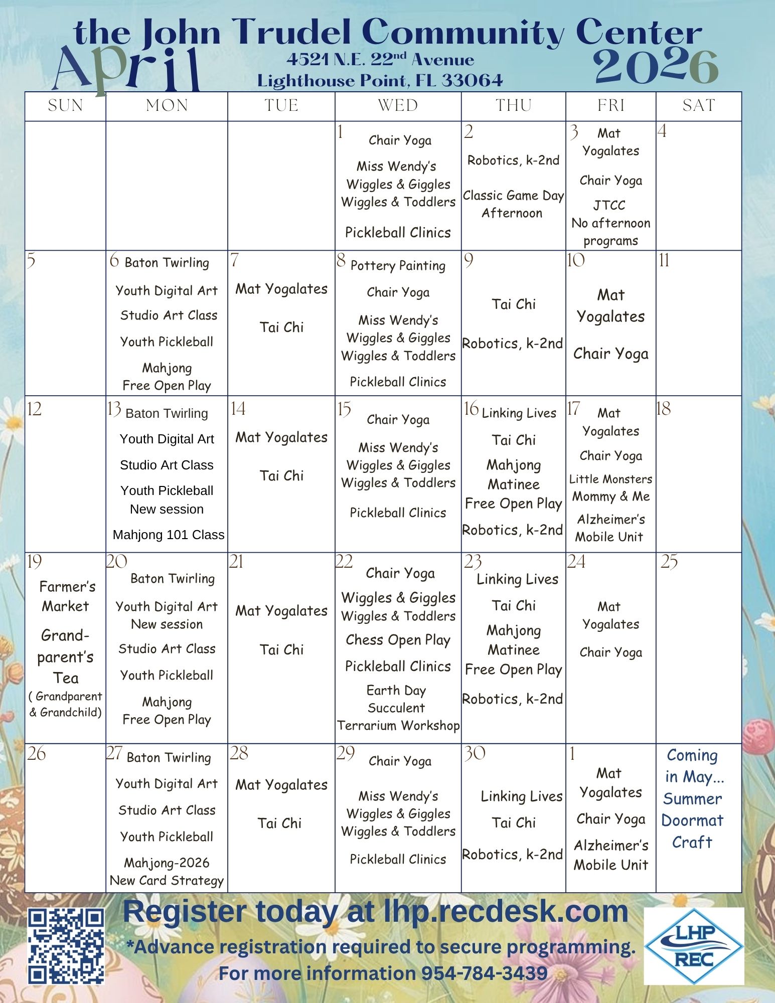 Mahjong April 2026 Mat Yogalates-Friday Linking Lives Grandparents Tea Apr 19 LHP Earth Day 2026